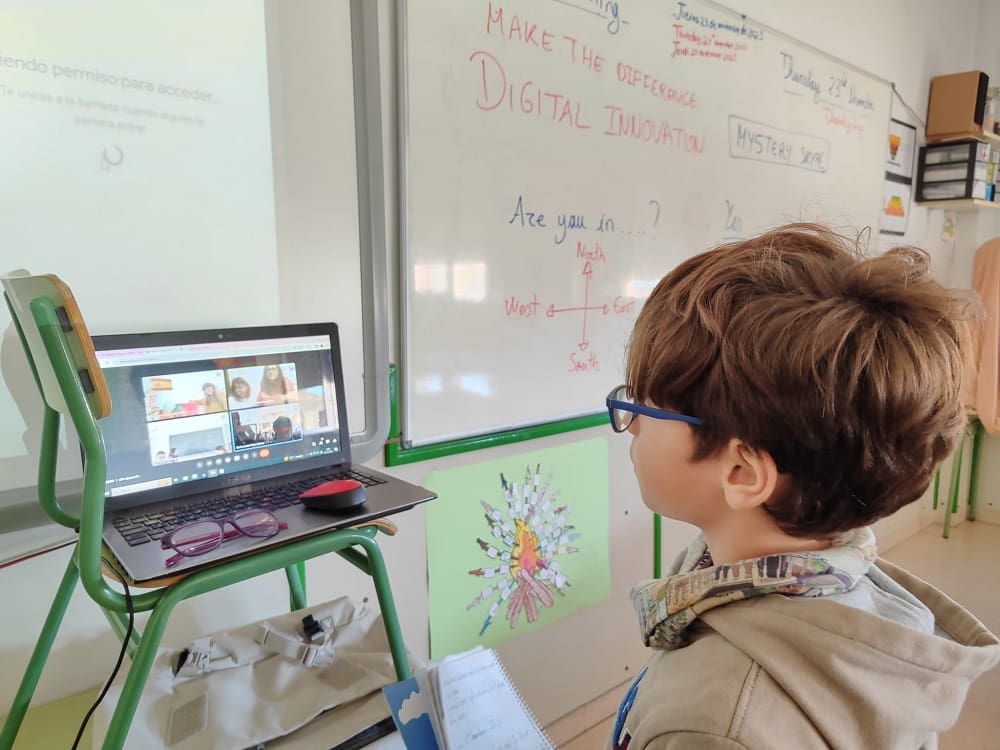 Esta semana, rompiendo barreras físicas, hemos realizado la primera videoconferencia donde jugamos al juego «Mystery Skype», generando emoción y curiosidad entre los participantes a través de una serie de preguntas concisas. En el juego, los estudiantes emprendieron un viaje virtual con Google Maps para desvelar el misterio de la ubicación de las otras escuelas. Fue una experiencia que ayudó a nuestros alumnos a utilizar la lengua extranjera en un contexto real y a nutrir el sentido de ciudadanía global en los participantes.