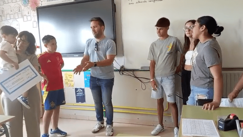 Además, este acto solidario tiene un nombre propio que le da aún más sentido: Bruno. Con el emotivo mensaje «¡Estamos contigo, donacion alumnos 4 eso cooperativa escolar colegio cruz de piedra jumilla 1Bruno!«,  han querido dedicar esta acción a todos los niños que luchan cada día contra esta dura enfermedad, y especialmente a él.