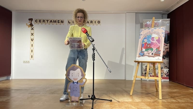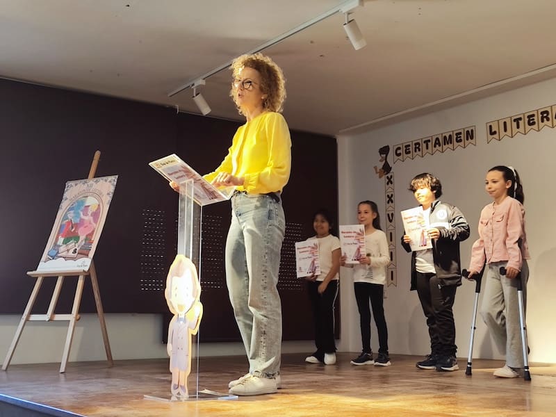 Tras ello, nuestra querida Isabel Martínez Martínez, docente fundadora del centro, regresó al escenario para presentar el libro de cuentos ganadores con una entrañable y divertida ponencia en verso.